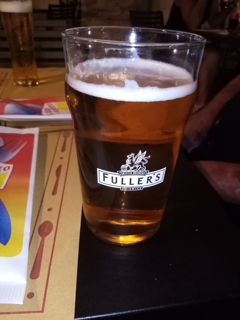 As pizza and pollo (chicken) aren’t exactly uncommon in this part of the world, it needs to be something special. Pints? Well, they did arrive in a Fuller’s glass, and surely that alone is reason enough for this review.