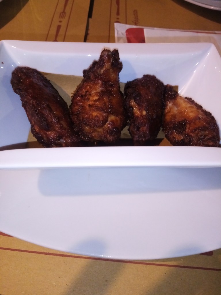 And so, at last, to the infamous ‘ali di pollo’ – chicken wings. As you’ll notice from the picture, theyre quite dark in colouration, which to me has always been a good sign: a lot that are paler in appearance tend to taste that way, too. I’m very pleased to report that my suspicions were correct and that all the plaudits had been justified. I had, however, heard that at least one person found them a little too salty, but if you can’t stand the seasoning, get out the wine, as they say.